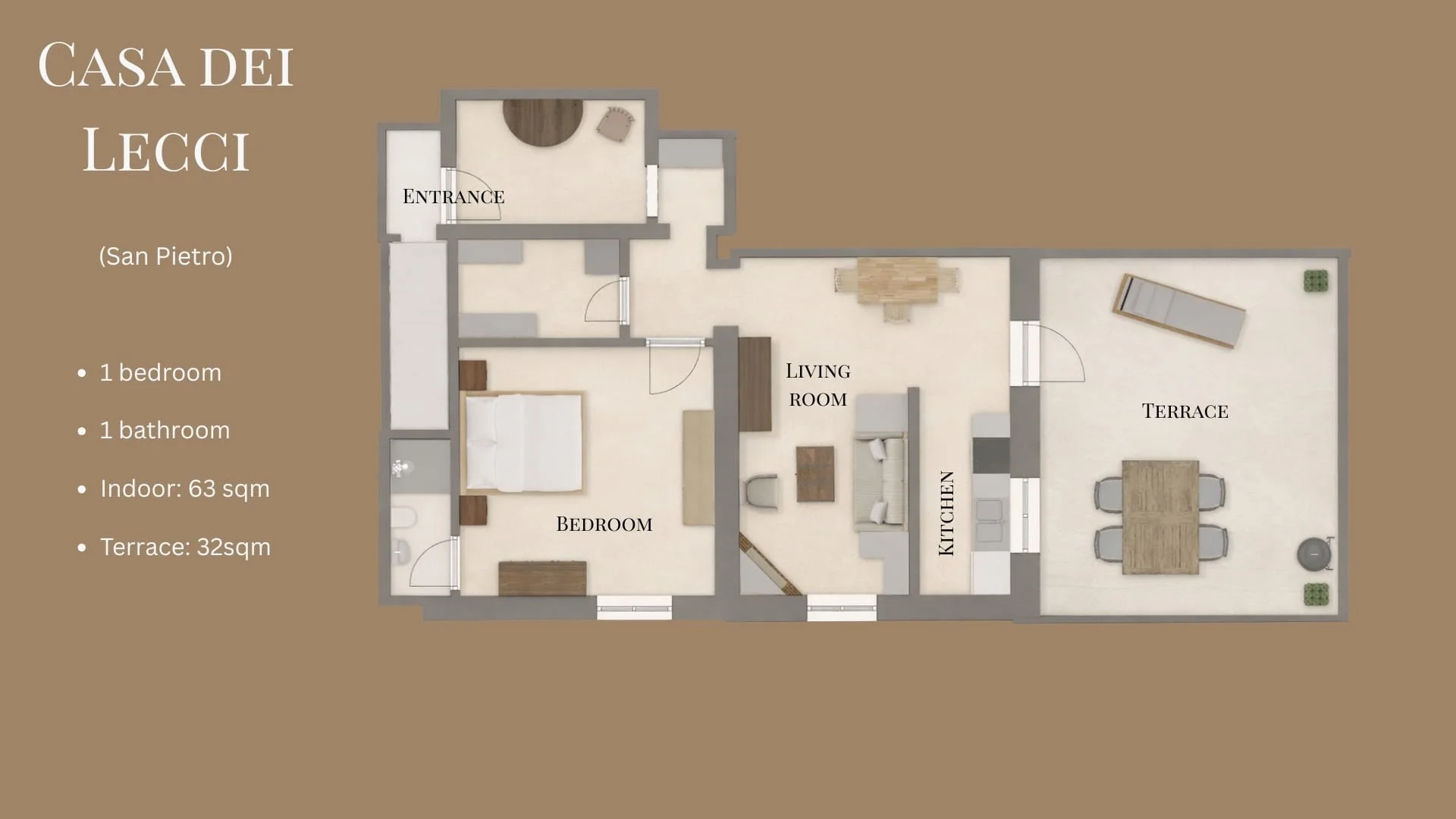 Casa dei Lecci will enchant you with its simplicity and carefully created atmosphere. The bedroom has a beautiful view of Val di Chiana and Lucignano. With the double exposure of the large terrace, you’ll enjoy both sunrises and sunsets. You’ll want to return to this house over and over to renew in its peace and quiet.